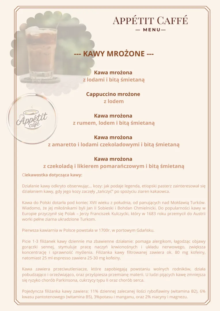 Opublikowane w 31 marca, 202021 stycznia, 2025 przez adminMENU MENU, Appetit Cafe, … Mrożona Kawa Zdjęcie 4 z 13