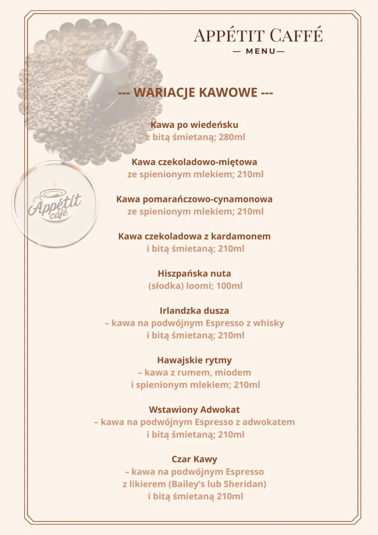Opublikowane w 31 marca, 202021 stycznia, 2025 przez adminMENU MENU, Appetit Cafe, … Wariacje Kawowe Zdjęcie 6 z 13